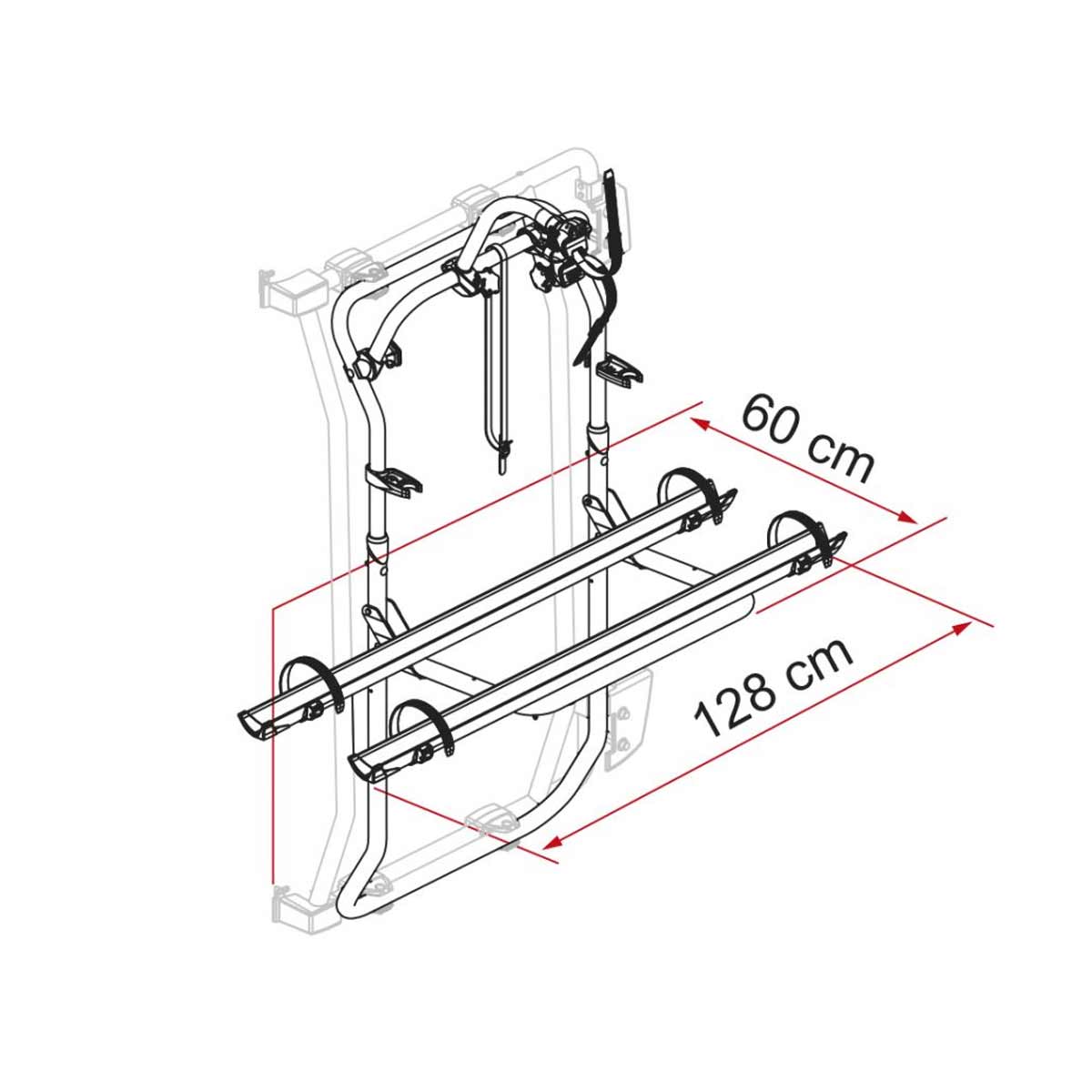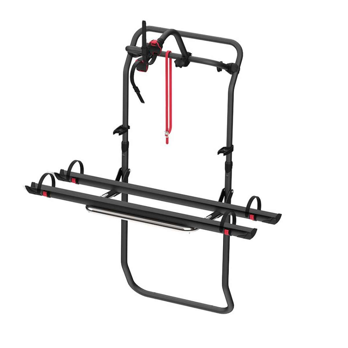 Fiamma Carry-Bike Frame designed for installation on multiple van conversions using dedicated installation frame (supplied separately). This bike rack carries two standard bikes or three bikes (two ebikes) with the addition of Fiamma parts.