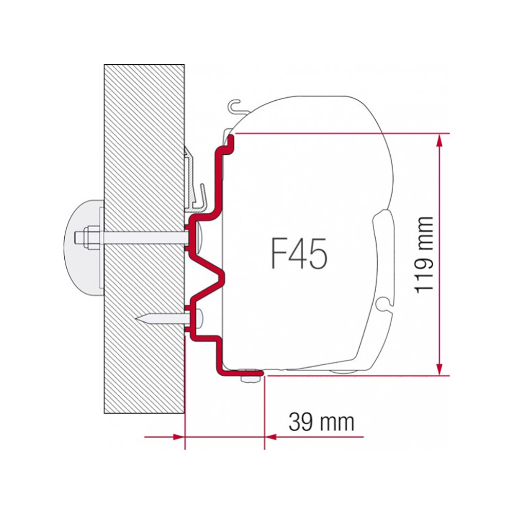 Fiamma 98655-918 mounting adapter bracket for Rapido after 2011. 3 pc, 450cm bracket.