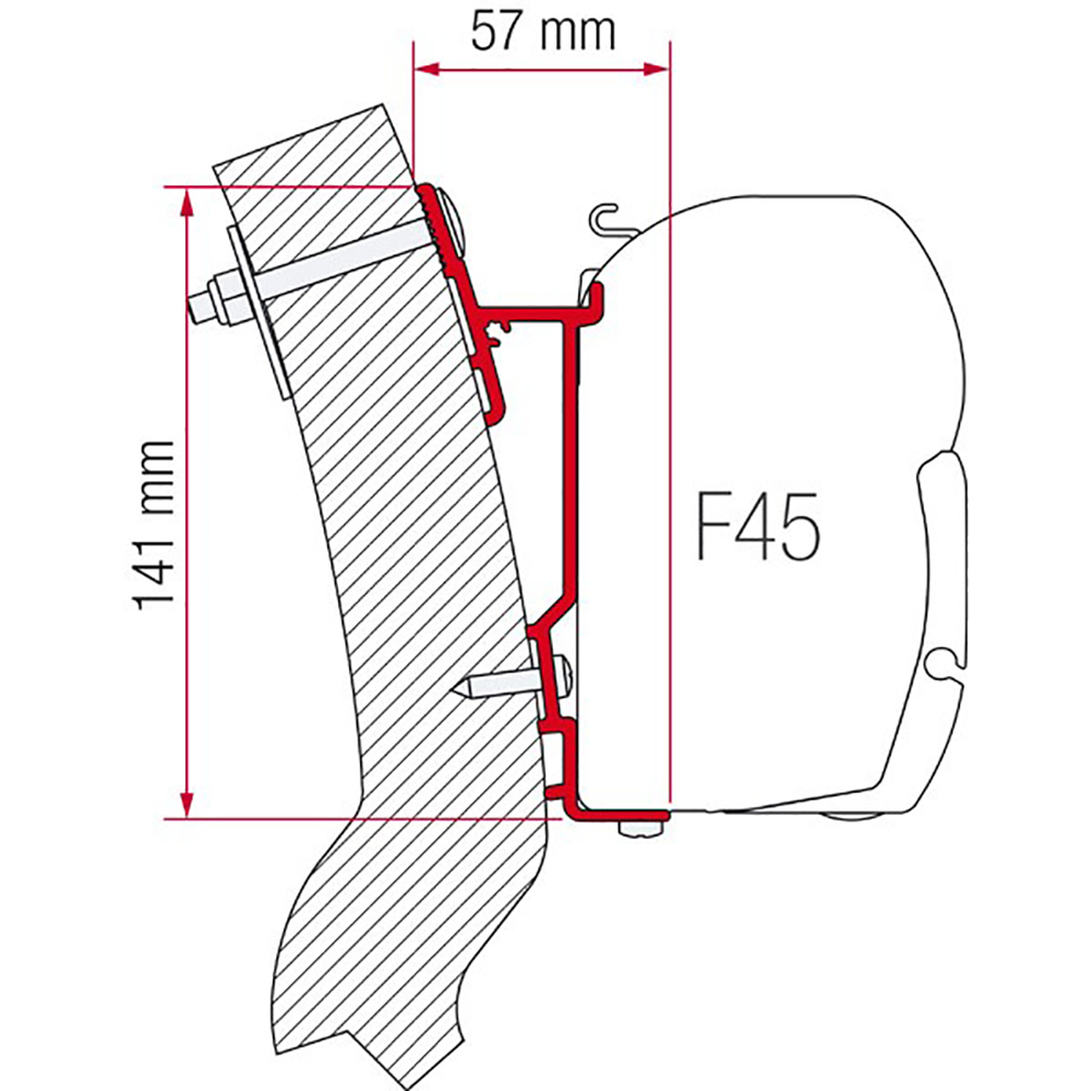 Fiamma 98655-931 mounting adapter bracket for Wingamm Oasi. With 350cm bracket.