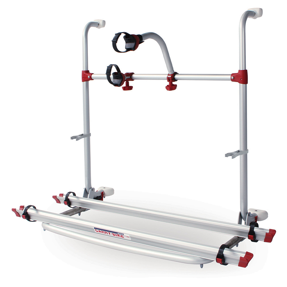This updated Carry-Bike Pro Autotrail is an enlarged edition for Autotrail motorhomes from 2011 to 2016 with integrated spare wheel moulding (rounded type). The Carry-Bike has black plastic trim as opposed to the old traditional red trim model and carries a maximum of 2 bikes. Max load 40kg.