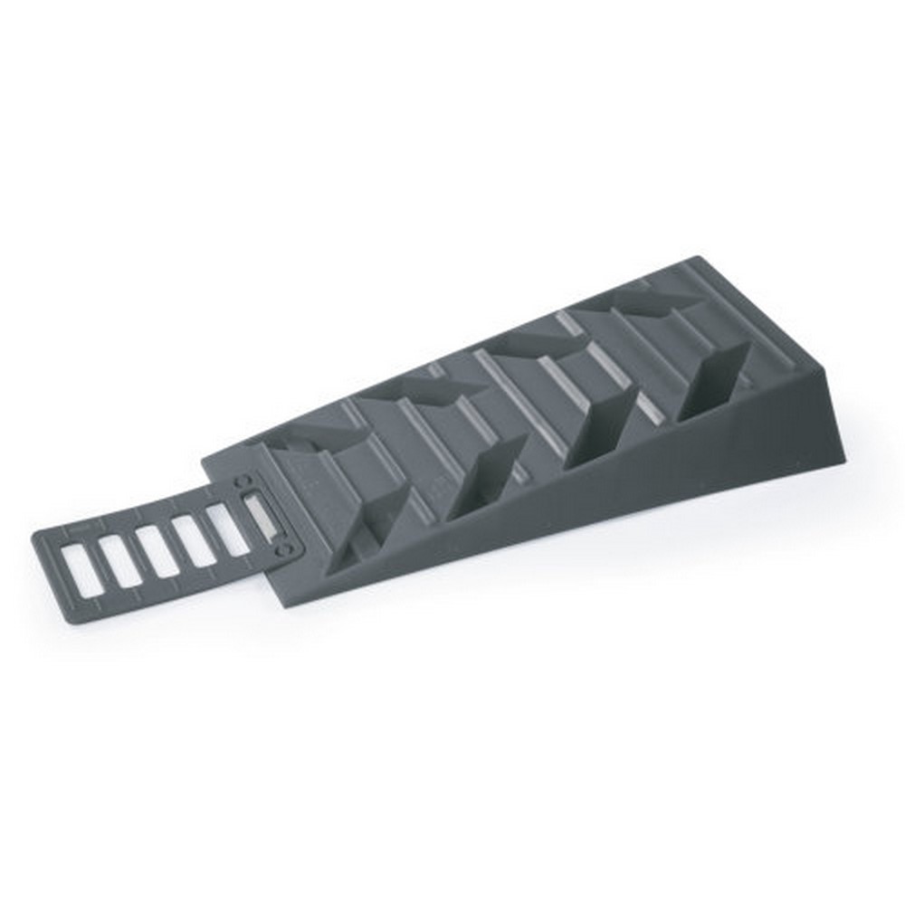 The chock is to be used with either Level Up or Level Pro to secure wheels during long stopovers. Solid construction in UV-resistant HD polyethylene. Each one weighs only 130gr. Sold in pairs.