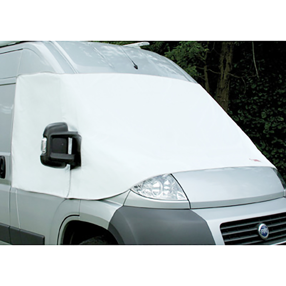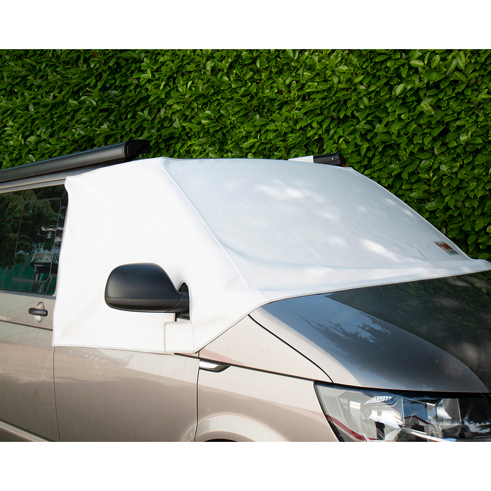 Coverglas in an exterior blind system. It protects the vehicle cab from the sun and UV radiation and increases privacy. Quick and easy to fit, it follows the contour of the vehicle and is held in place by handy magnets integrated in the product. The assembly system with fastening from inside protects the Coverglas from theft. Handy bag for keeping the product when it is not in use. Size of bag + product: 33 x 48 x 12cm. This version is specifically designed to fit on the Ford Transit vehicle. Weight 3.5KG.