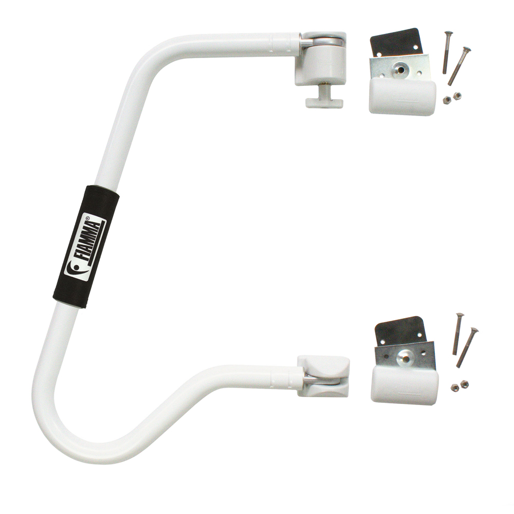 Strong security bar allows blocking of front doors from inside. Quick and easy to use. Universal model thanks to the telescopic frame and hooks provided. Suitable for most vehicles, see Fiamma brochure for full list of makes and models. Antitheft warning label visible from the outside to prevent thefts. Closed dimensions: 119cm x 18.5cm.