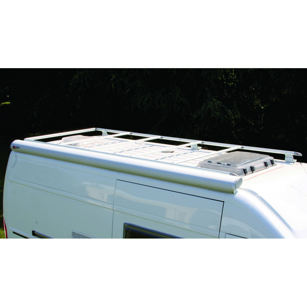 Fiamma luggage carrier system specially designed for Fiat Ducato vehicles from 06/2006 onward. The system is suitable for either long or short wheelbase by shortening the tubes. Thanks to the preinstalled fixing system on the roof of the Ducato, this Roof Rail luggage carrier is easy to install and the vehicle does not need to be drilled. This model is the 2021 Deep Black version.